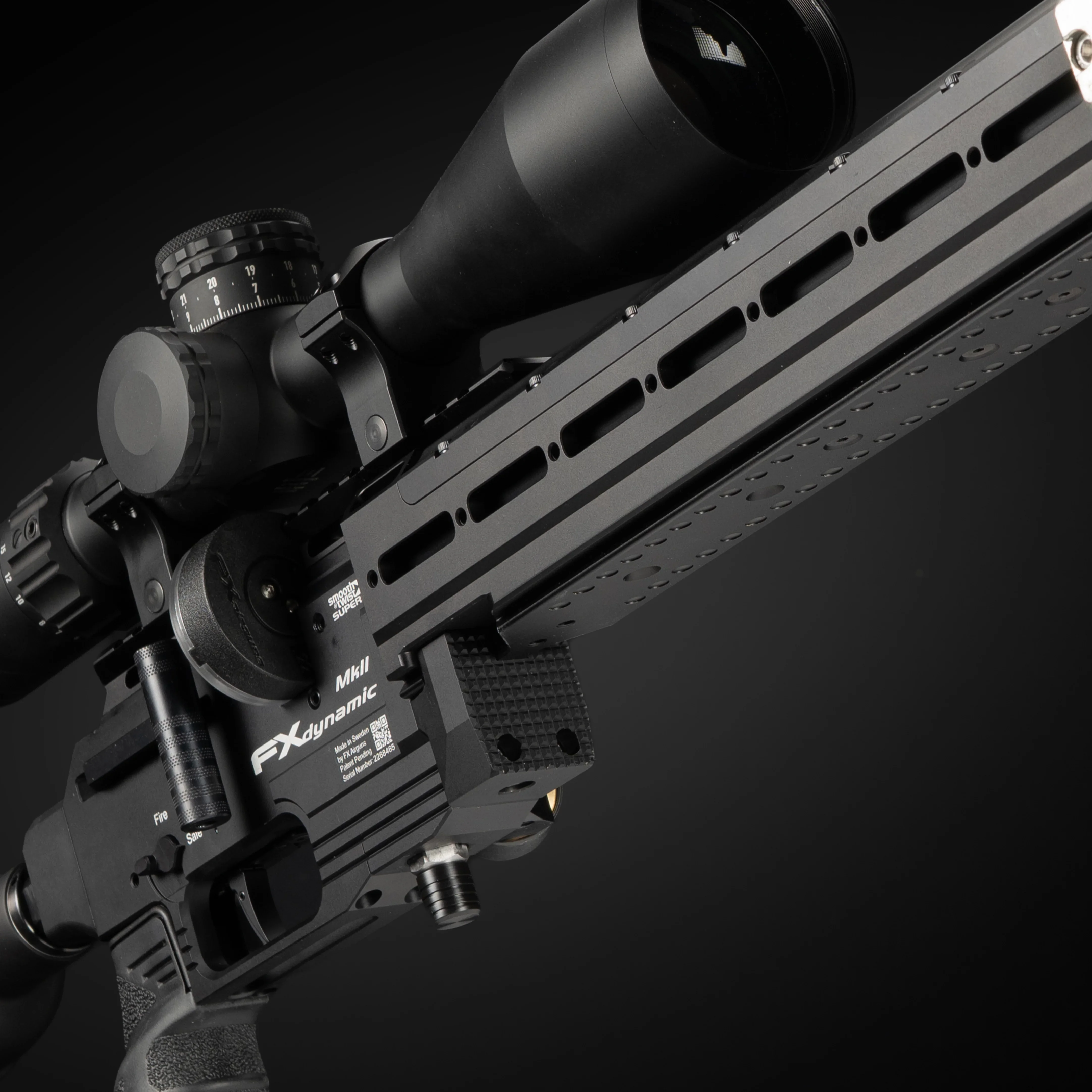At the heart of the MKII update is an all-new solid front stock design that grips the Dynamic Block at multiple anchor points. The result is a noticeably stiffer, more unified system eliminating flex and increasing repeatability under recoil. The scope rail is extended and now integrated into the front stock, delivering increased rigidity with 30 MOA built-in incline. The new rail also Improves better alignment between barrel, block, and optic with incorporated alignment pins. The new rail includes a full-length ARCA rail underneath, paired with M-LOK slots along the sides and a QD sling mount, a new barricade stops design and on the inside of the rail we incorporated slots to add internal weights. Available Accessories A competition-style top plate cover FX External weights FX Internal weights FX Bag Rider.