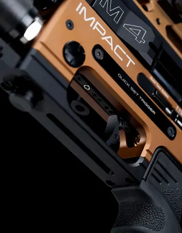 With the new QS Trigger unit and top rail introduced we also improved the overall feel and comfort of shooting the Impact. The new FX Grip is one of those improvements that brings that feel altogether. We designed a new style grip that is more defined, comfortable to grip onto, with just the right amount of palm swell and a beaver tail to enhance the shooting comfort, giving you a firm grip on your Impact M4. Ensuring you hit your mark with more confidence!