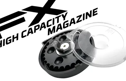 For the FX Impact M4 we have redesigned the high-capacity magazines . The New magazines are made from a stronger material and have a new internal mechanism to ensure the inner drum will rotate smoothly even when fully loaded with some of the heaviest slugs on the market.